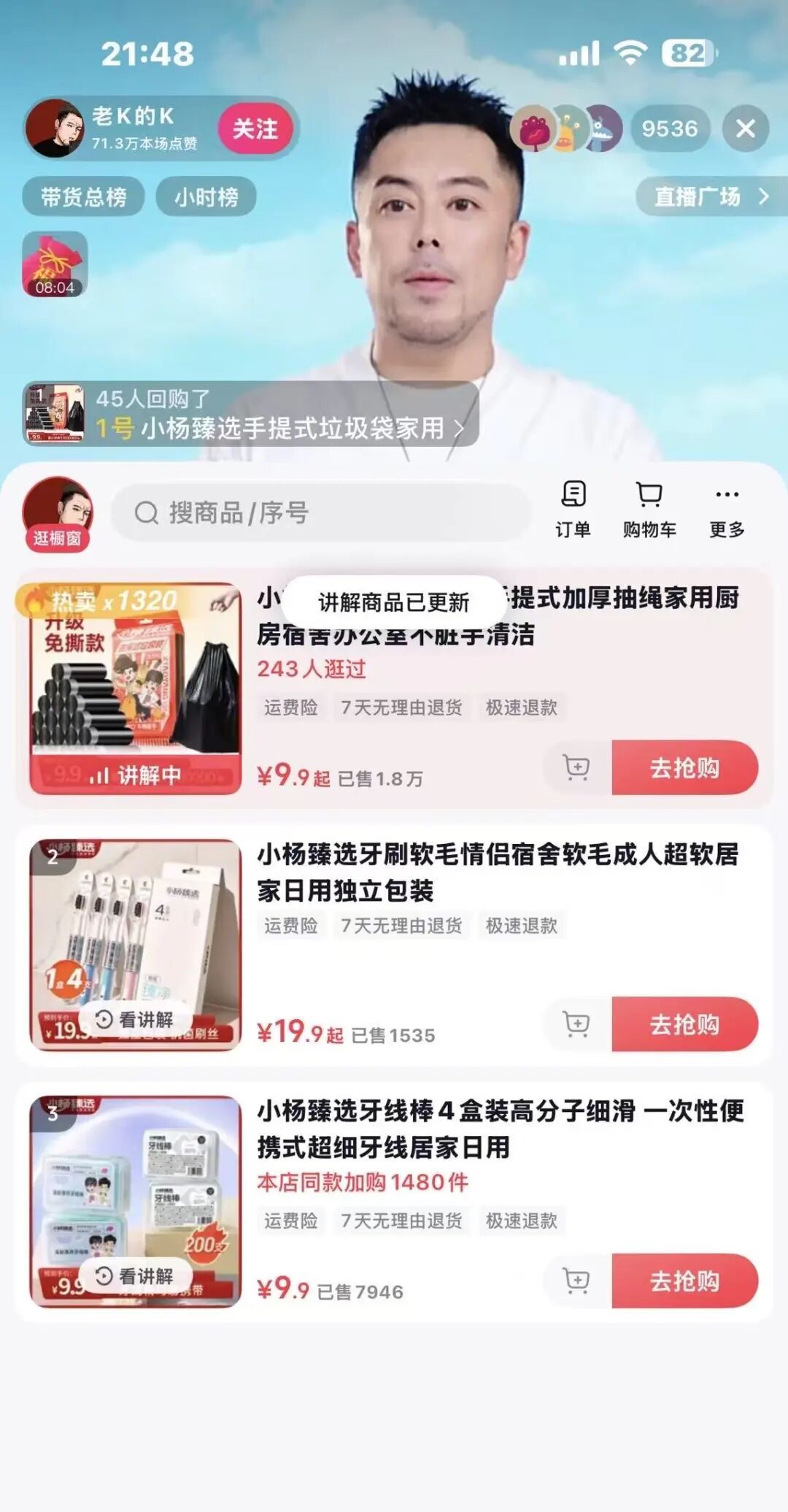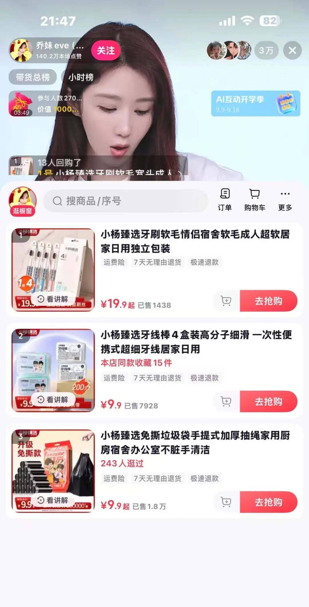 分别都销售了“小杨臻选”的产品